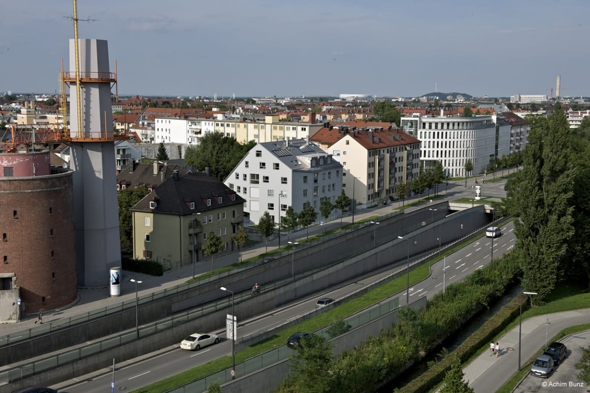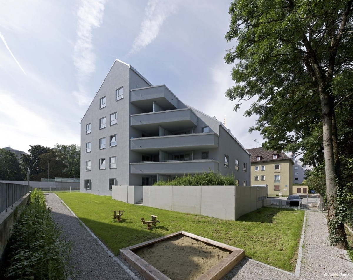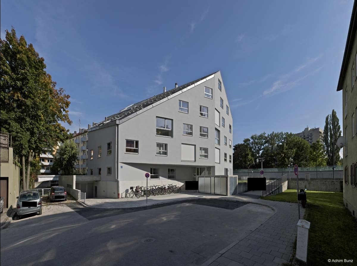 Diese architektonisch aussergewöhnliche Wohnanlage mit 20 Wohnungen, davon acht Sozialwohnungen ( SoBoN) entstand 2010 in direkter Lage am Mittleren Ring. Einzigartig sind die teilweise unterschiedlichen Raumhöhen, sowie  der Grundstücksfläche angepassten Grundrissgeometrie. Die Dachform, sowie innovative Lärmschutzmaßnahmen sind die Antwort auf die lärmgeplagte Lage direkt am Mittleren Ring.